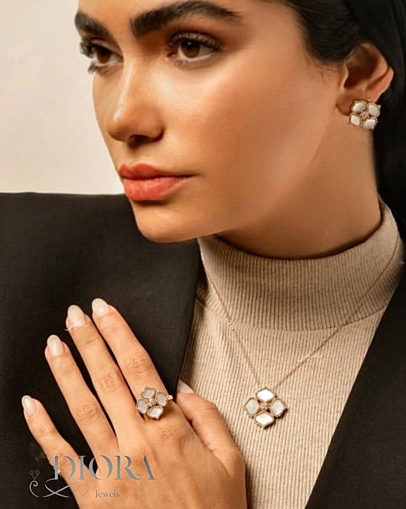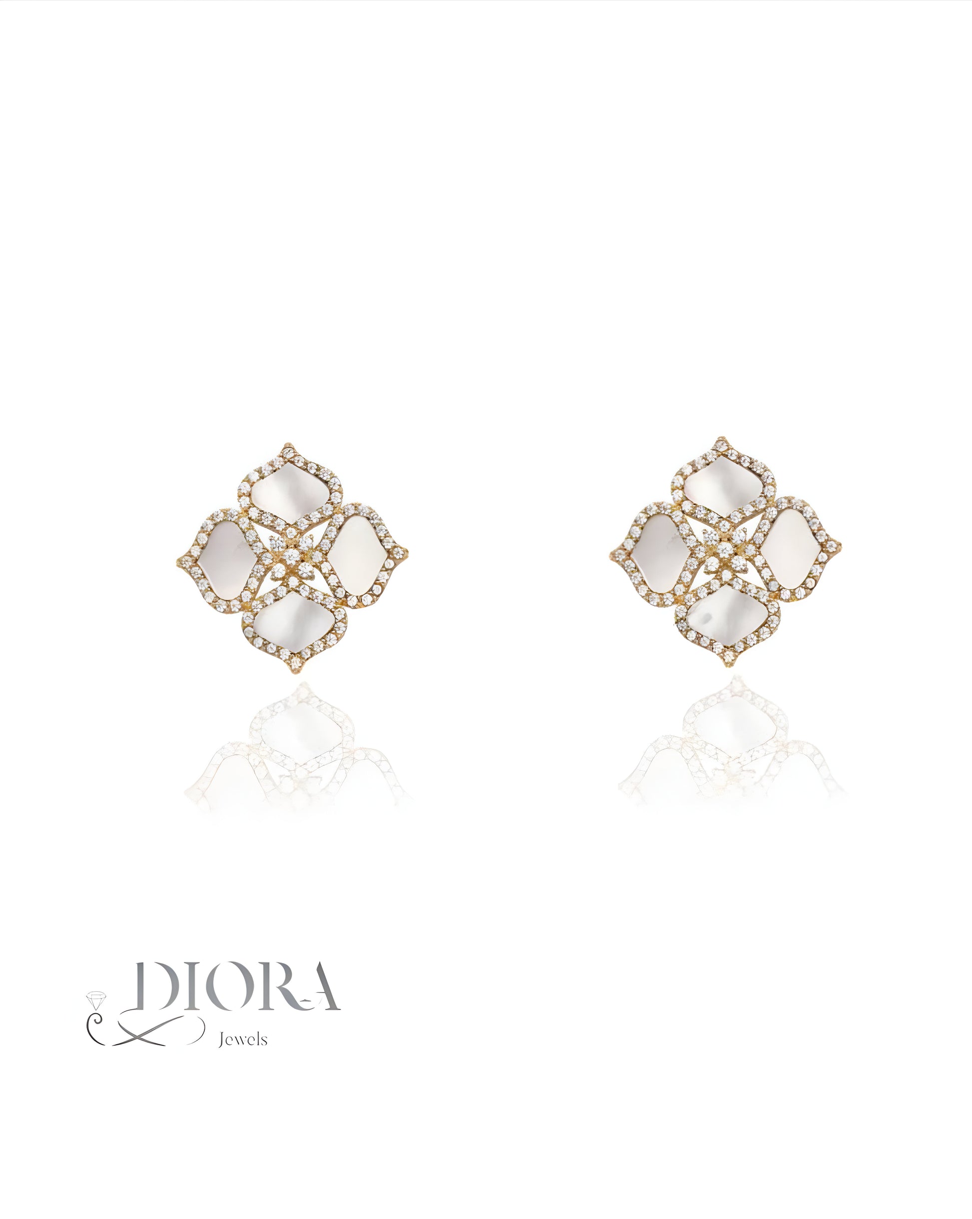 These earrings feature a luxurious floral design with intricate diamond details, perfect for adding a touch of elegance to any outfit.