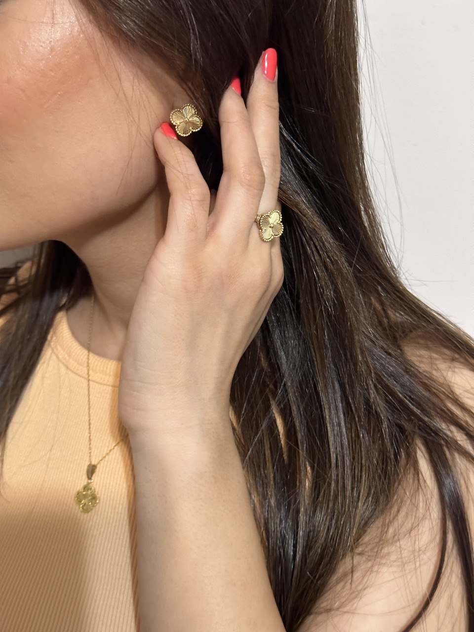 Elegance meets nostalgia in these Vintage Gold Stud Earrings, a pair of exquisite jewelry pieces that effortlessly bridge the past and the present. Crafted with meticulous attention to detail, these earrings showcase the enduring beauty of vintage design, while the warmth of gold adds a touch of luxury.